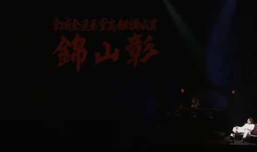 For the unfamiliar, title cards display at the introduction of each character. Typically, the screen goes black and white, displaying only red text detailing the character's name and their affiliation (if any). The stage play simulates this by darkening the stage save for a single spotlight on the character being introduced, with their information being projected on a skrim in the background. Here, you can see the title card of Akira Nishikiyama in Yakuza Kiwami and The Stage Play. And yes, the iconic sound effect was also used onstage, don't you worry.